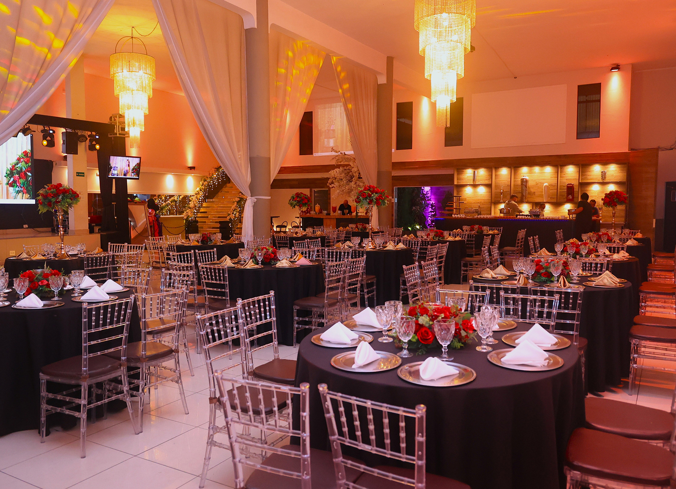 O espaço conta com um palco equipado para bandas e DJs, além de estruturas Box Truss para a pista de dança. Nossa equipe operacional é capacitada e uniformizada, pronta para garantir que todos os aspectos técnicos do seu evento sejam impecáveis.